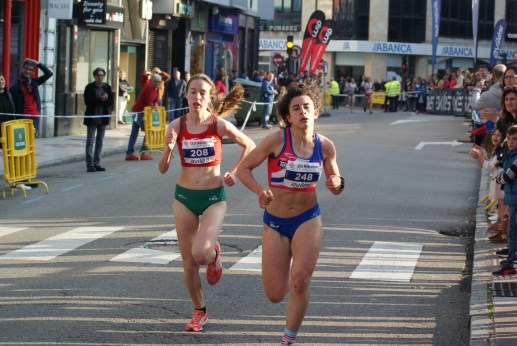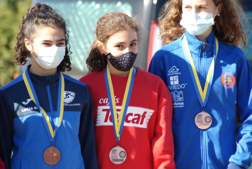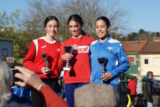 En categoría femenina, otra vez CLAUDIA GLEZ. SERRANO y SARA RUBIO FUERTES consiguieron el doblete, primera y segunda respectivamente, repitiendo el resultado del cross de Navia. Claudia, ya desde el principio, puso un ritmo de carrera imposible para sus rivales, llegando a la meta con una gran ventaja. Por su parte Sara, más conservadora, se mantuvo en el grupo hasta que a falta de 500 metros realizó un fuerte cambio dejando a sus rivales sin opciones, lo que le permitió llegar a la meta en solitario. En la categoría masculina MAURO GAVILÁN SUAREZ