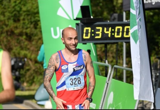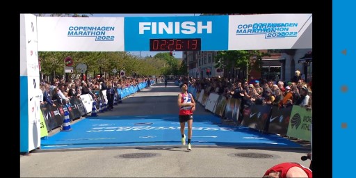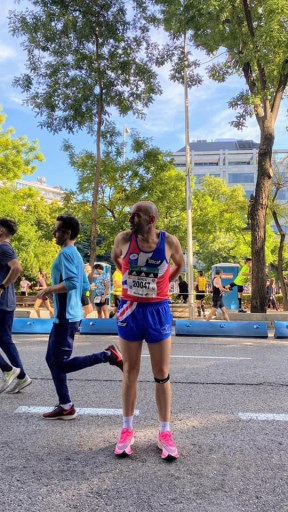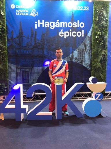 8h 12'19". Su ritmo de carrera fue 8'29" el kilómetro.
