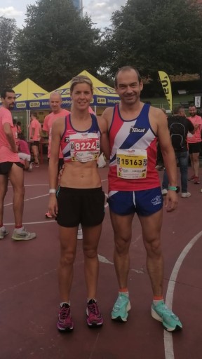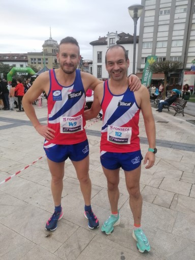 Se desplazaron hasta esta localidad palentina RUBEN DEL CAÑO y ANGEL RODRIGUEZ. Los dos se subieron al podium en la media maratón, siendo Rubén sexto de la general y primero +50 con un tiempo de 1h 29'17" y Angel 19 de la general y segundo +55 con un tiempo de 1h 42'46" Rubén corría nuevamente el domingo, pero en este caso, la maratón en donde quedó octavo de la general y cuarto +50.